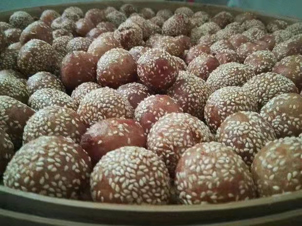 同时准备的还有炸煎圆、芋丸、蜘蛛丝、油角之类的小吃,春节前,一家老小围坐一起做炸煎圆、做馓子是最快乐的时光。炸好的第一锅是一定要供奉给祖先“品尝”的,表示感恩。