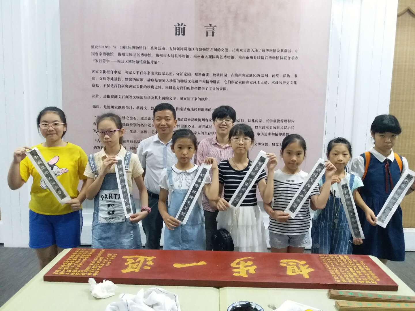 此次活动是梅州地区首次由国有博物馆与民办博物馆共同举办,旨在加强各类博物馆之间的业务交流,实现优势互补、互通有无。另外,为了让更多人了解中国传统的拓片技艺、爱上中国传统文化、增强文化自信,本次展览共展出各种类型的拓片近100幅,为明清以来反映梅州客家乡规民约、宗教信仰、诗礼传家、兴学重教等题材内容的碑记、对联、牌匾类别的拓片。