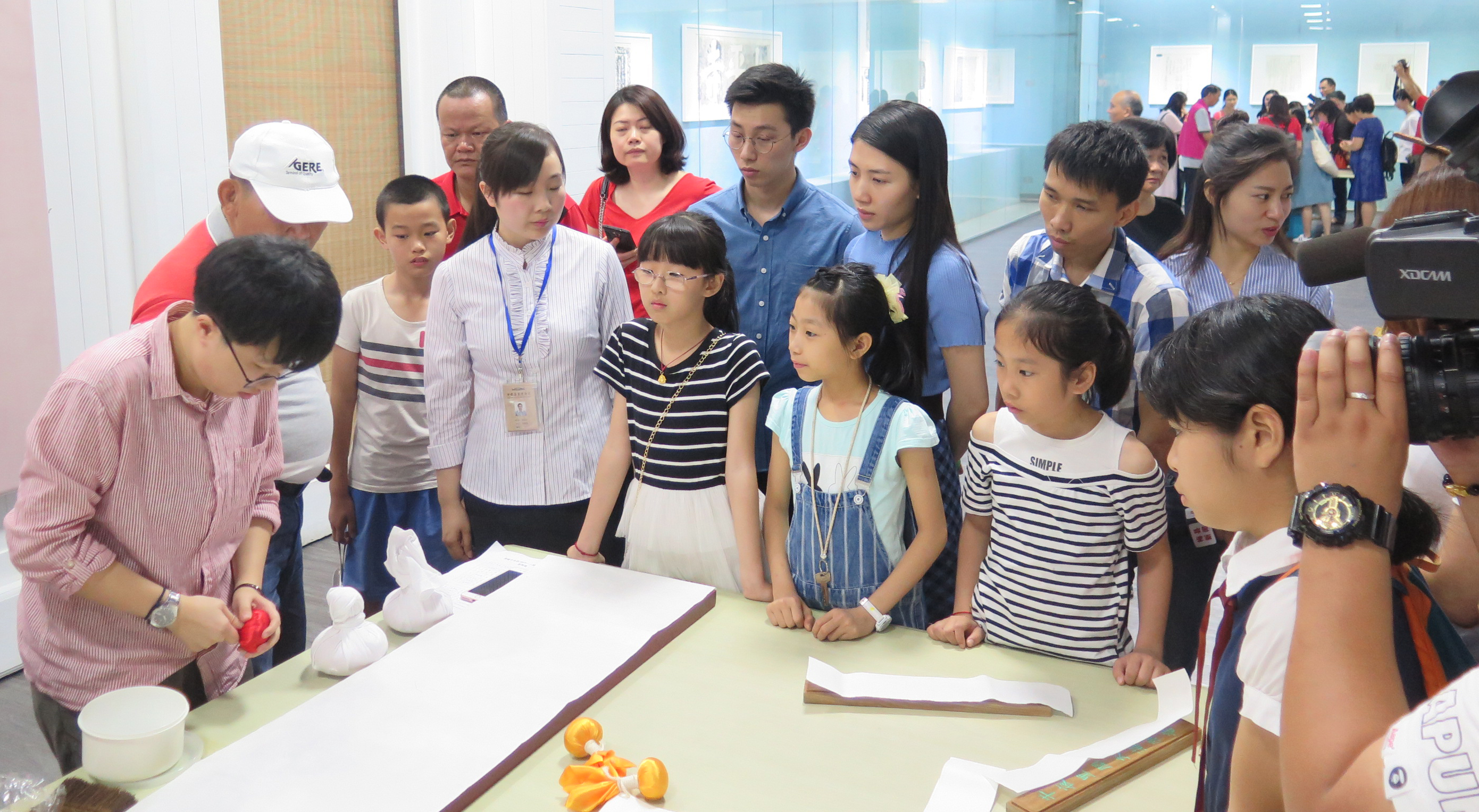 开幕仪式上,梅县区区委宣传部部长涂戈峰发表讲话。其后,在活动现场开展“穿越千年的COPY”的主题教育活动。通过拓印工艺的现场演示及观众互动参与,观众基本了解了传统拓印工艺的方法和步骤,感受到传统文化的魅力。