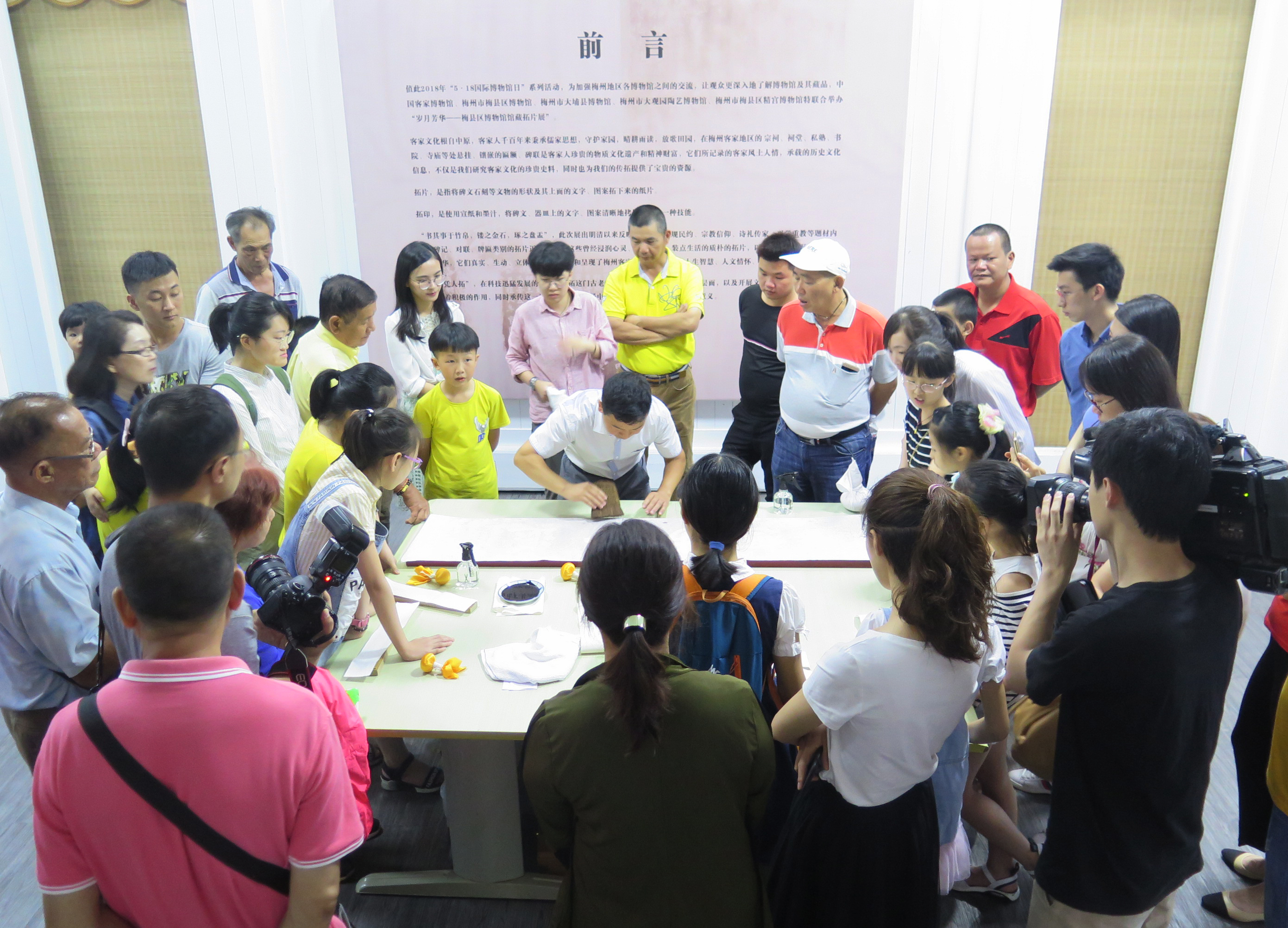 2018年5月13日上午,由梅州市文化广电新闻出版局、梅县区区委宣传部、梅县区文化广电新闻出版局、大埔县文化广电新闻出版局共同主办,中国客家博物馆、梅县区博物馆、大埔县博物馆、梅州市大观园陶艺博物馆、梅县区精宫博物馆承办的“岁月芳华——梅县区博物馆藏拓片展”在中国客家博物馆举行开幕仪式。梅县区委宣传部部长涂戈峰,梅州市文化广电新闻出版局文物科科长叶永忠,梅县区文化广电新闻出版局局长廖峰松、副局长卜雪梅,中国客家博物馆负责人侯鸿忠,梅县区博物馆徐建文,大埔县博物馆邓亿娜,梅州市大观园陶艺博物馆黄龙源,以及博物馆志愿者、活动参与者等近100人出席仪式。