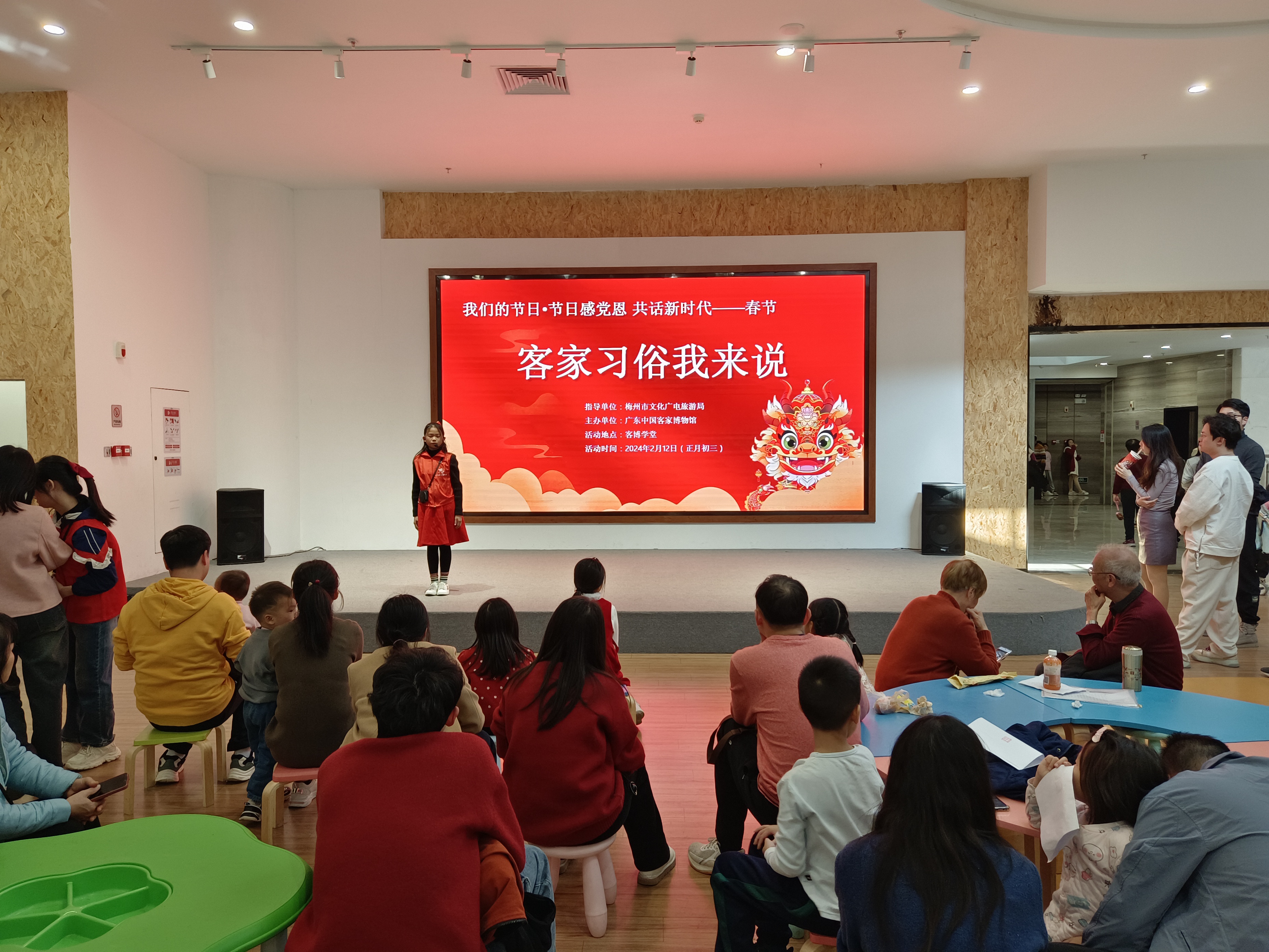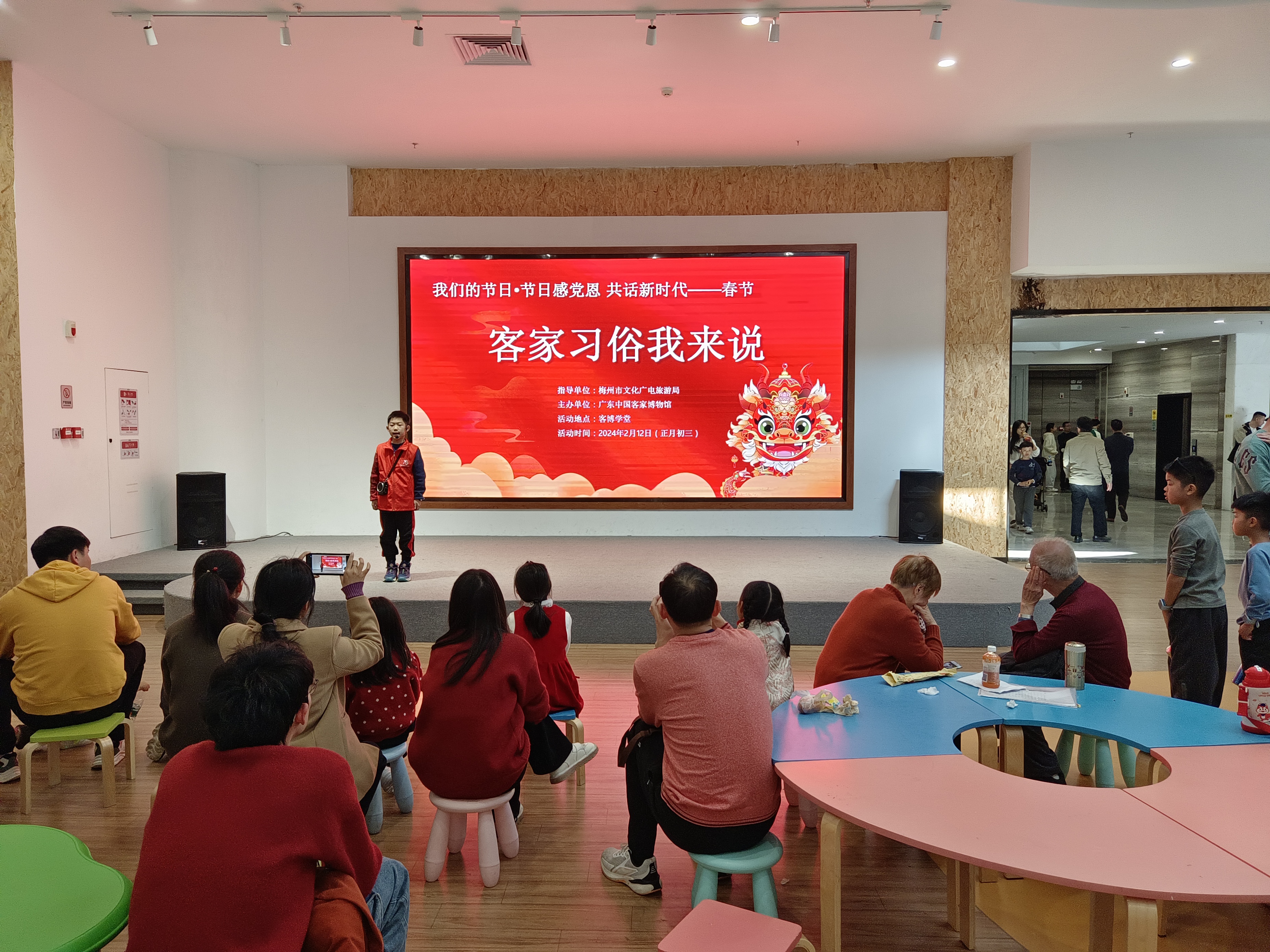 大年三十敬祖公,正月初一迎财神,正月初二“转妹家”……2月12日下午,客博学堂热闹非凡,小小讲解员们走上舞台,结合图片,声情并茂地向大家介绍客家人的过年习俗,共同感受客家“年文化”的独特魅力。