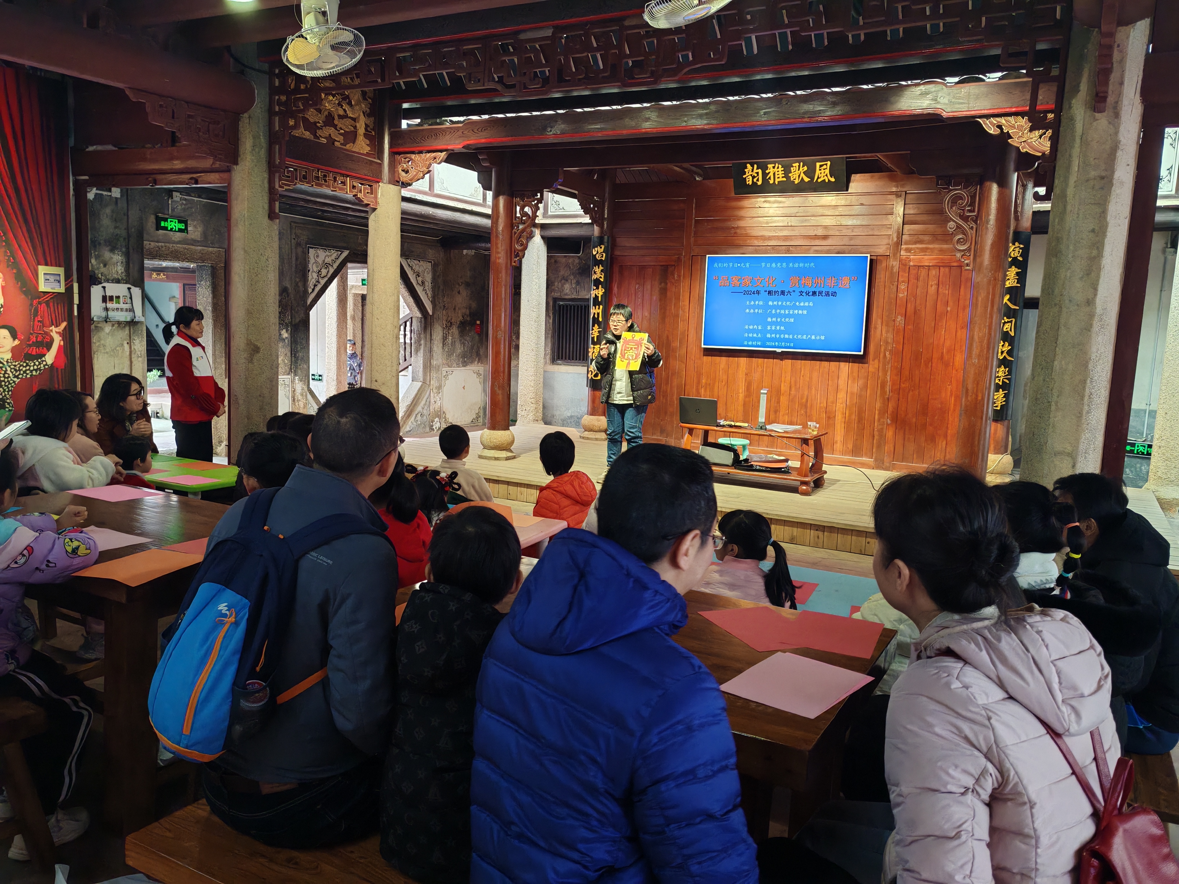 正值元宵佳节,2月24日上午,客家剪纸制作活动在喜庆热闹的节日氛围中拉开序幕,15组亲子家庭走进市非物质文化遗产展示馆,剪花灯剪纸,庆元宵佳节。