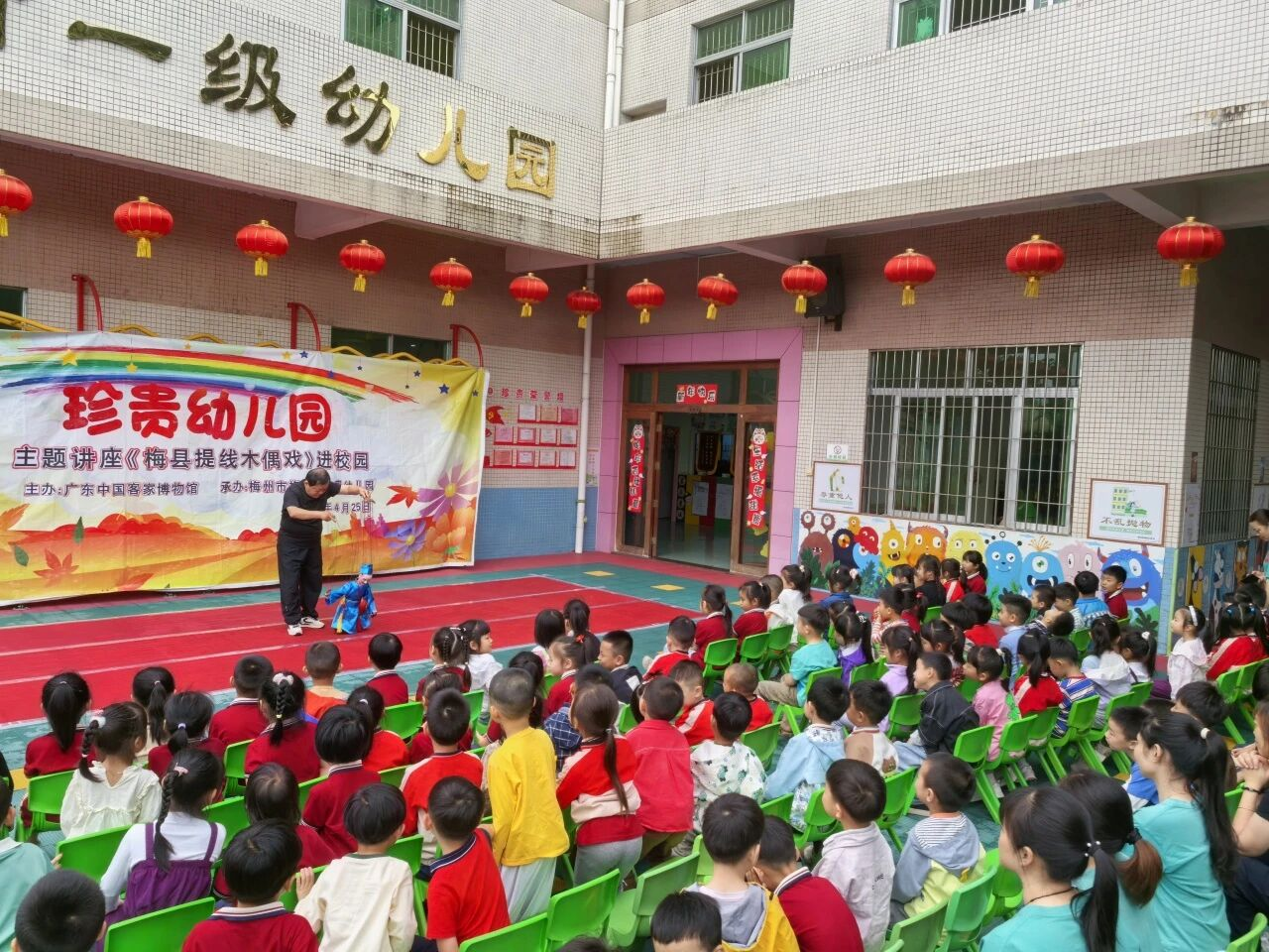 当提线木偶在幼儿园孩子手中“活”起来,当客家山歌的韵律回荡在中学校园,2025年非遗传承之旅,在我馆的精心策划下圆满收官。本年度“非遗主题讲座进校园”足迹遍布9所学校,特别邀请了梅县提线木偶戏省级非遗项目代表性传承人巫启胜老师、客家山歌剧省级非遗传承人杨苑玲老师,以9场沉浸式讲座,让两千余名师生近距离触摸客家文化的根脉。