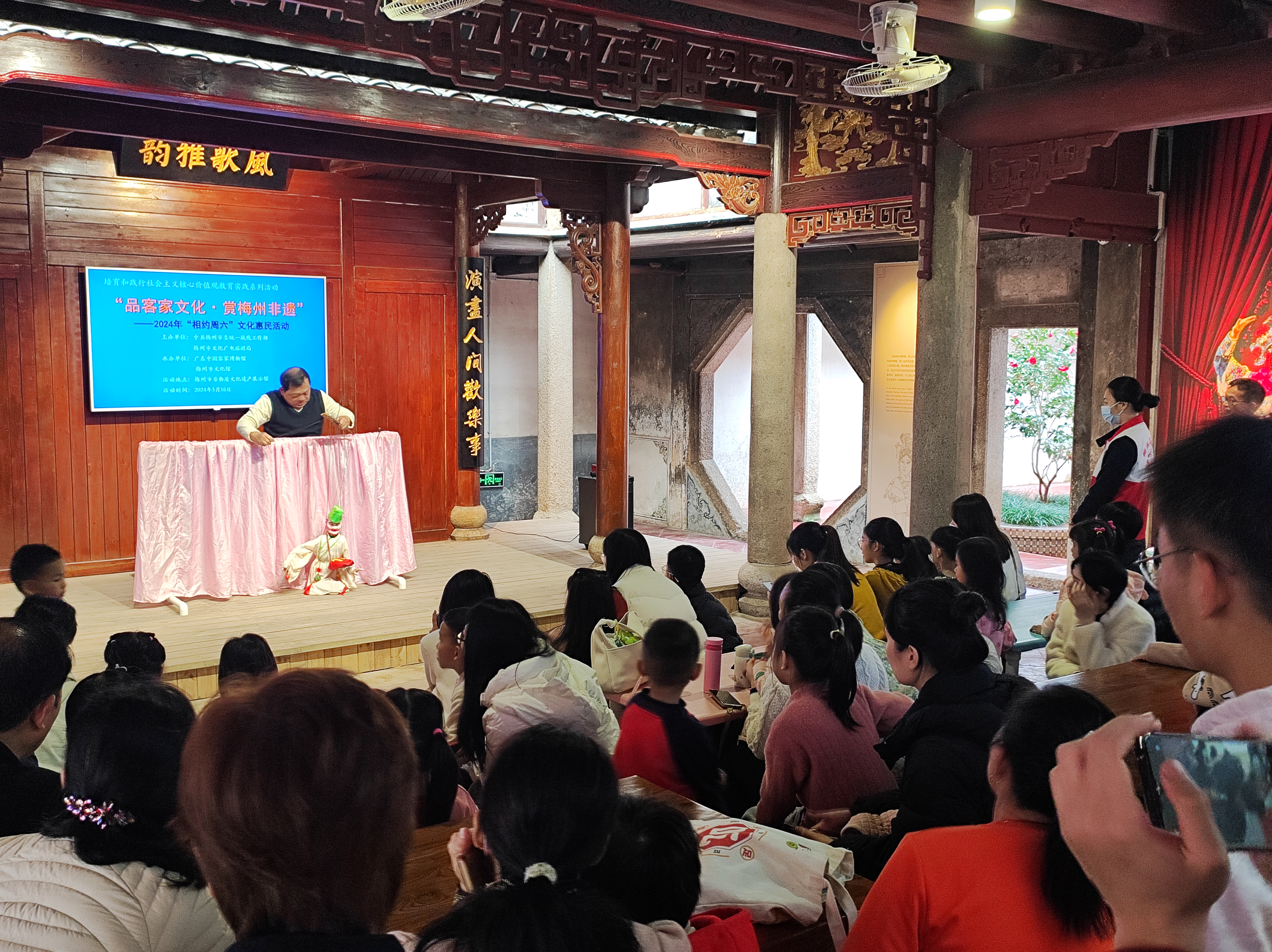 演出时间就在本周六的上午10:00—11:00(2024年4月13日),地点依旧是我们熟悉的梅州市非物质文化遗产展示馆非遗戏台。
