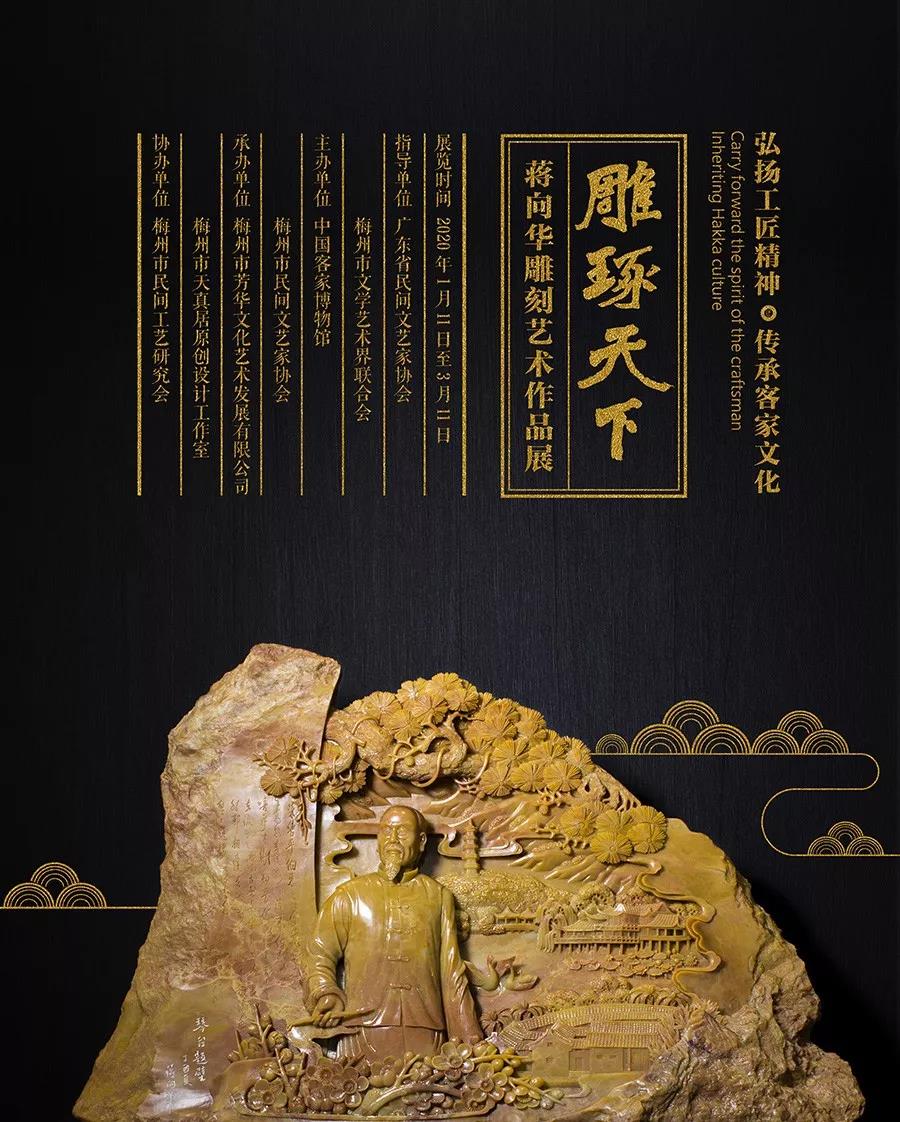 今日上午由广东省民间文艺家协会梅州市文学艺术界联合会作为指导单位,中国客家博物馆、梅州市民间文艺家协会主办的蒋向华雕刻艺术作品展《雕琢天下》
