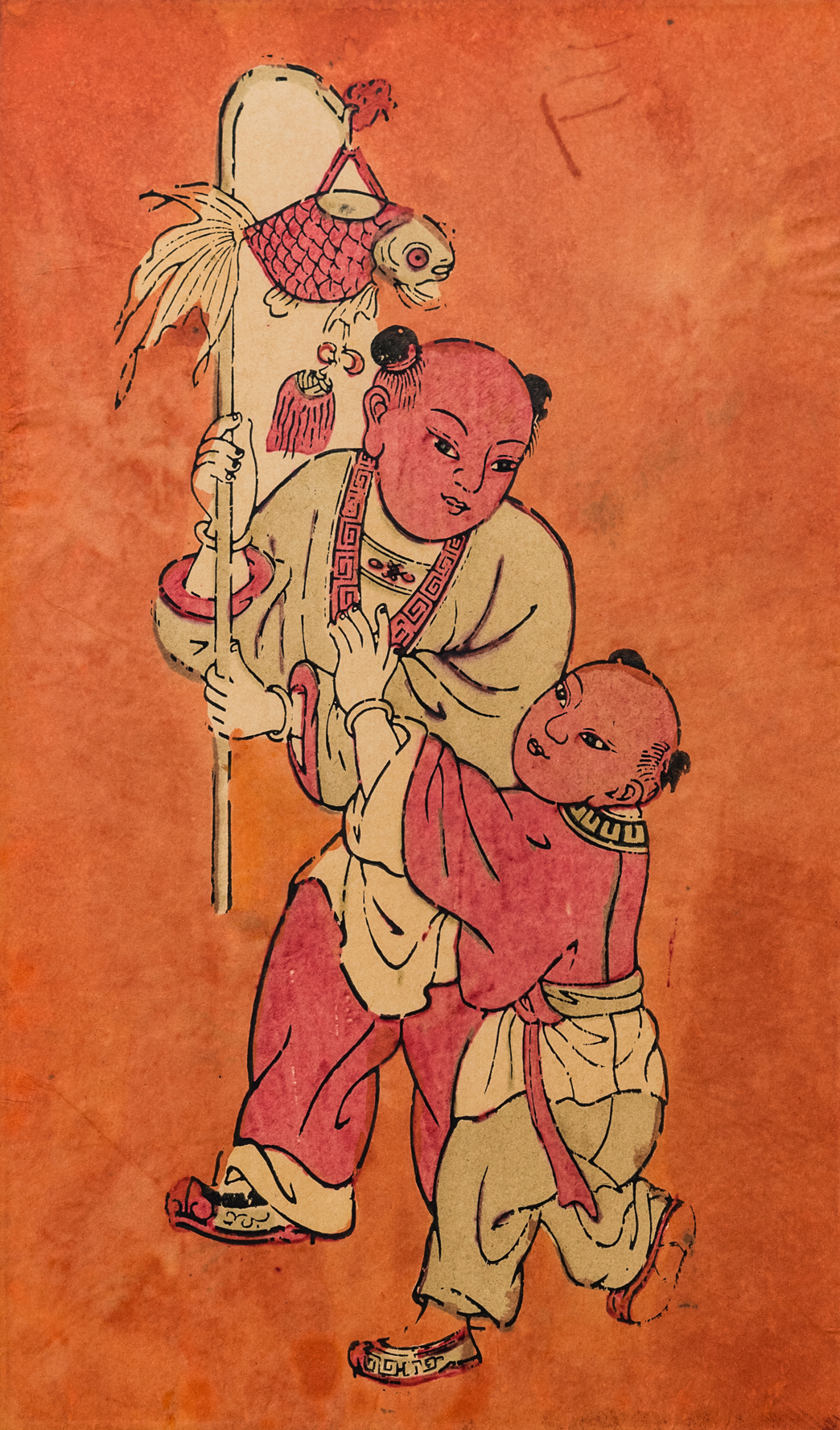 (展品:佛山木版年画《鲤鱼童子》)